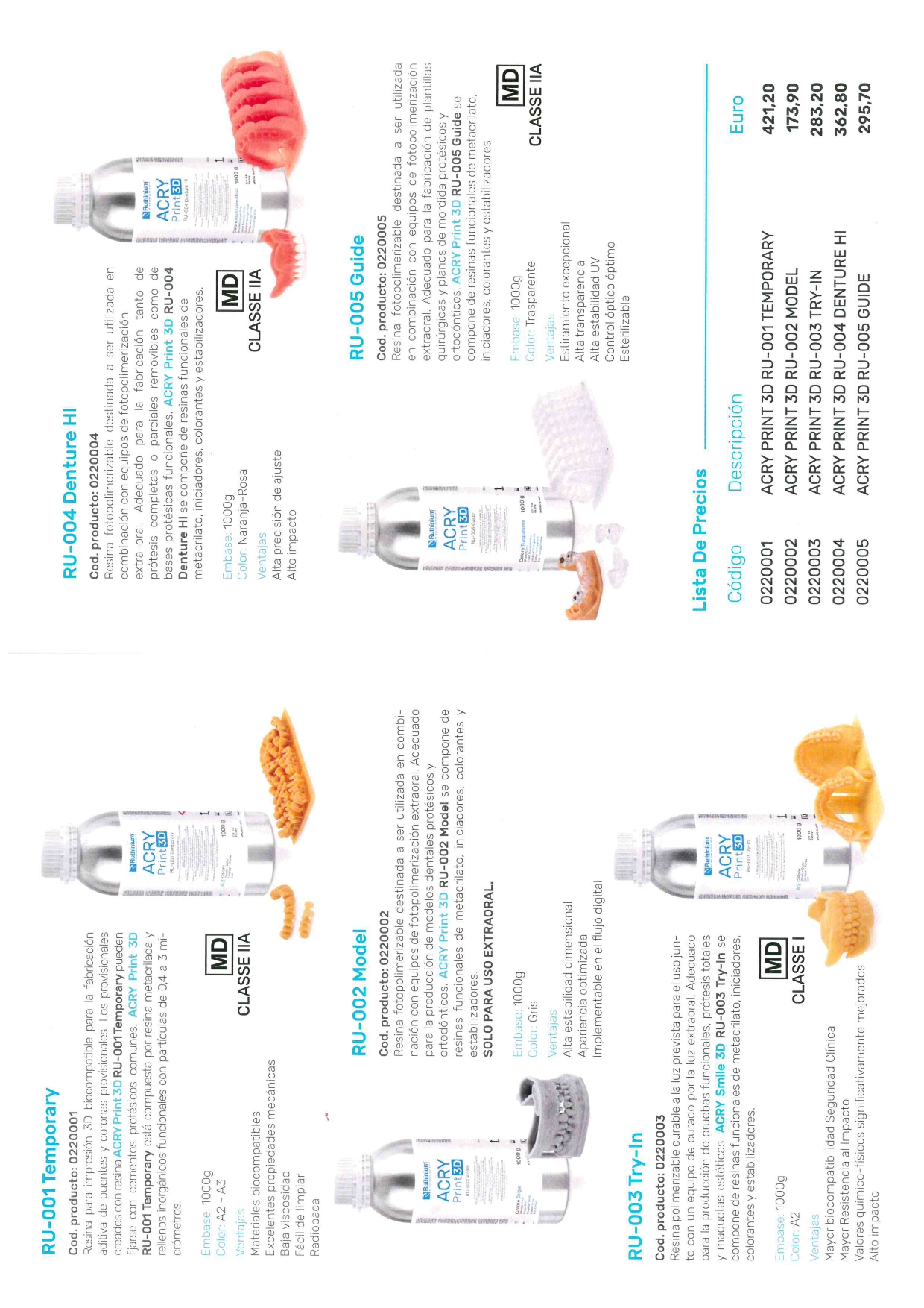 RESINAS DE IMPRESIÓN EN 3D. ¡ NOVEDAD ! Nos complace presentarles nuestra última novedad, las Resinas de Impresión en 3D. Aquí encontrarán el Catálogo de las Resinas de Impresión en 3D con sus pvp y el Listado de las I...